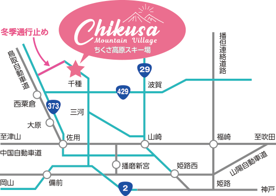 1)中国自動車道 山崎ICを鳥取方面へ出る(国道29号線)
